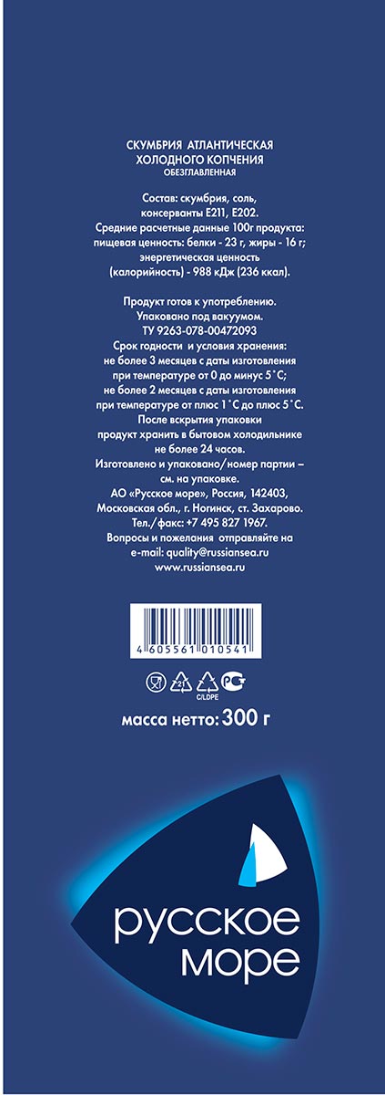 Скумбрия атлантическая холодного копчения — вкусный натуральный продукт для вашего стола. Натуральное копчение на ольховых опилках придает рыбе неповторимый вкус и аромат. Удобная упаковка с насечкой для вскрытия позволяет брать любимую закуску за город или в поход. Филе нарезано на порционные кусочки. Для ее разделки и подачи не нужен нож. Берите вилку и наслаждайтесь! Особенно к такой рыбке подойдет вареная или поджаренная на гриле картошечка.