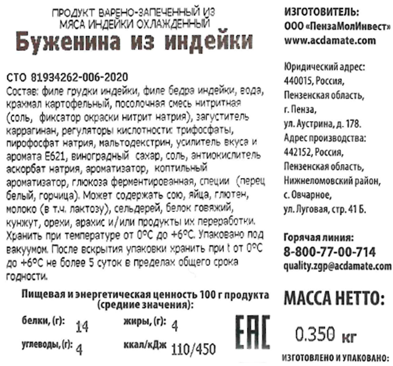 Низкокалорийная буженина из 100% мяса индейки с повышенным содержанием протеина. Нежная, вкусная, с приятным ароматом специй. Идеальный продукт для тех, кто хочет оставаться в форме, не отказывая себе в маленьких гастрономических радостях.