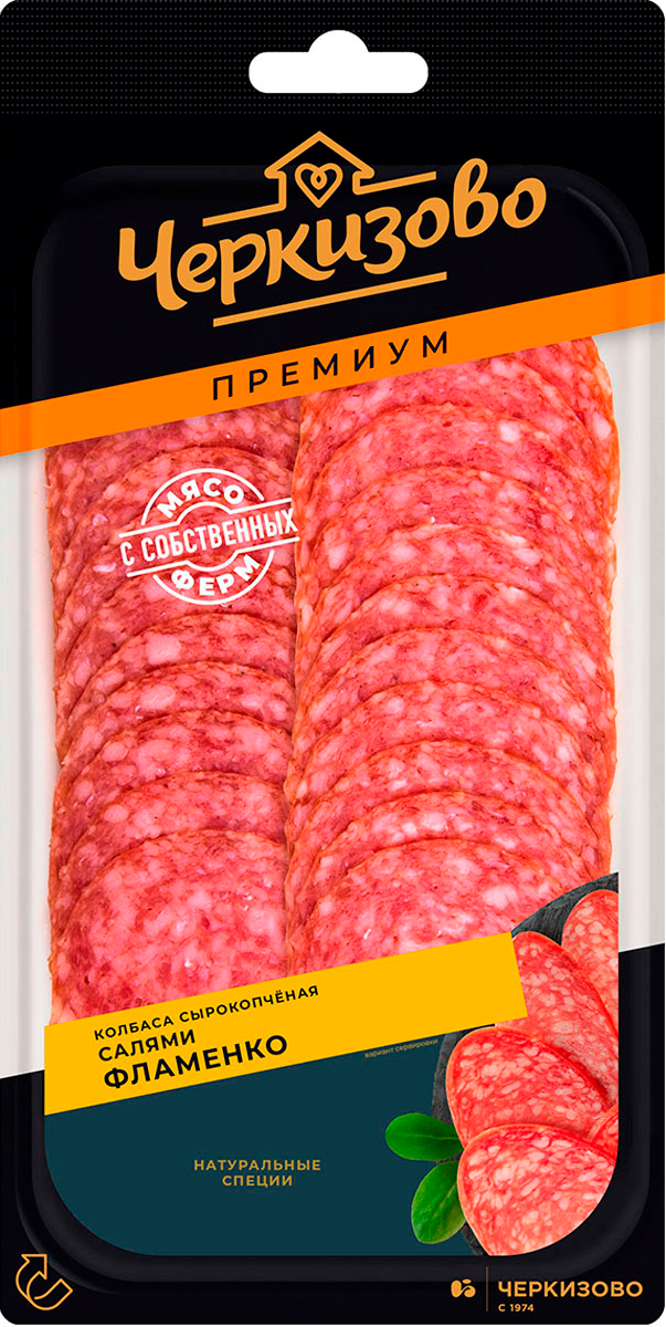 Салями «Фламенко» от «Черкизово» — сырокопченая premium-колбаса из свинины с пикантным, солоновато-пряным вкусом, аппетитным ароматом и приятным послевкусием. Продукт навевает ассоциации с жарким испанским солнцем. С охлажденным вином или горячим кофе, на поджаренном хлебе или с сыром — истинное наслаждение для гурманов.