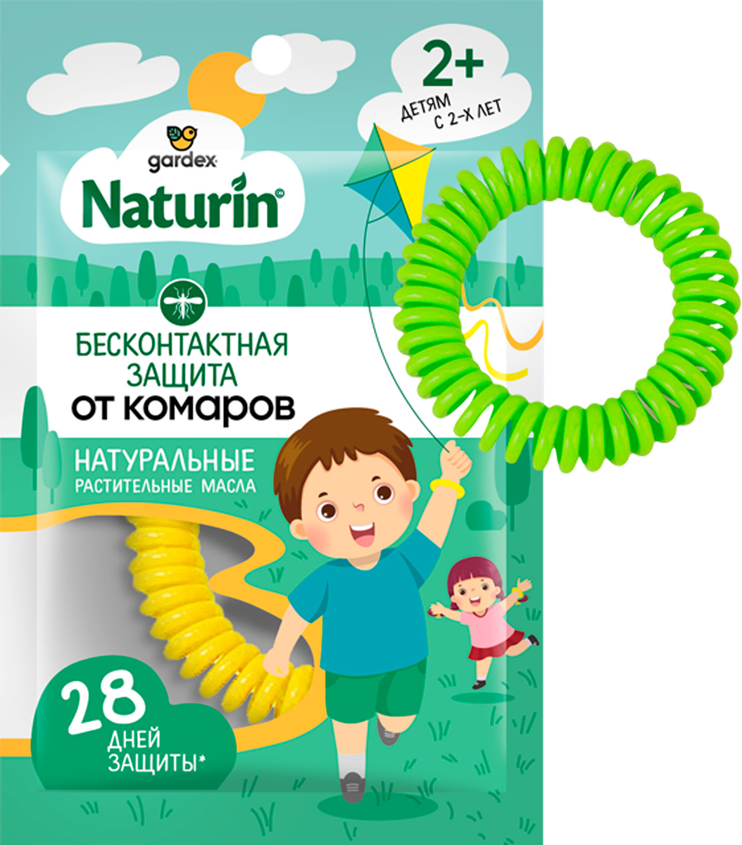 В теплую погоду дети готовы целый день проводить на улице. Очень сложно при этом уговорить капризного непоседу воспользоваться репеллентом от комаров. В таких случаях выбирайте альтернативные средства: браслет от комаров Gardex ненавязчиво защитит вашего ребенка. 28 дней защиты на основе натуральных растительных масел цитронеллы, герани и лемонграсса для детей с 2 лет. Ассортимент цветов на ваш выбор.