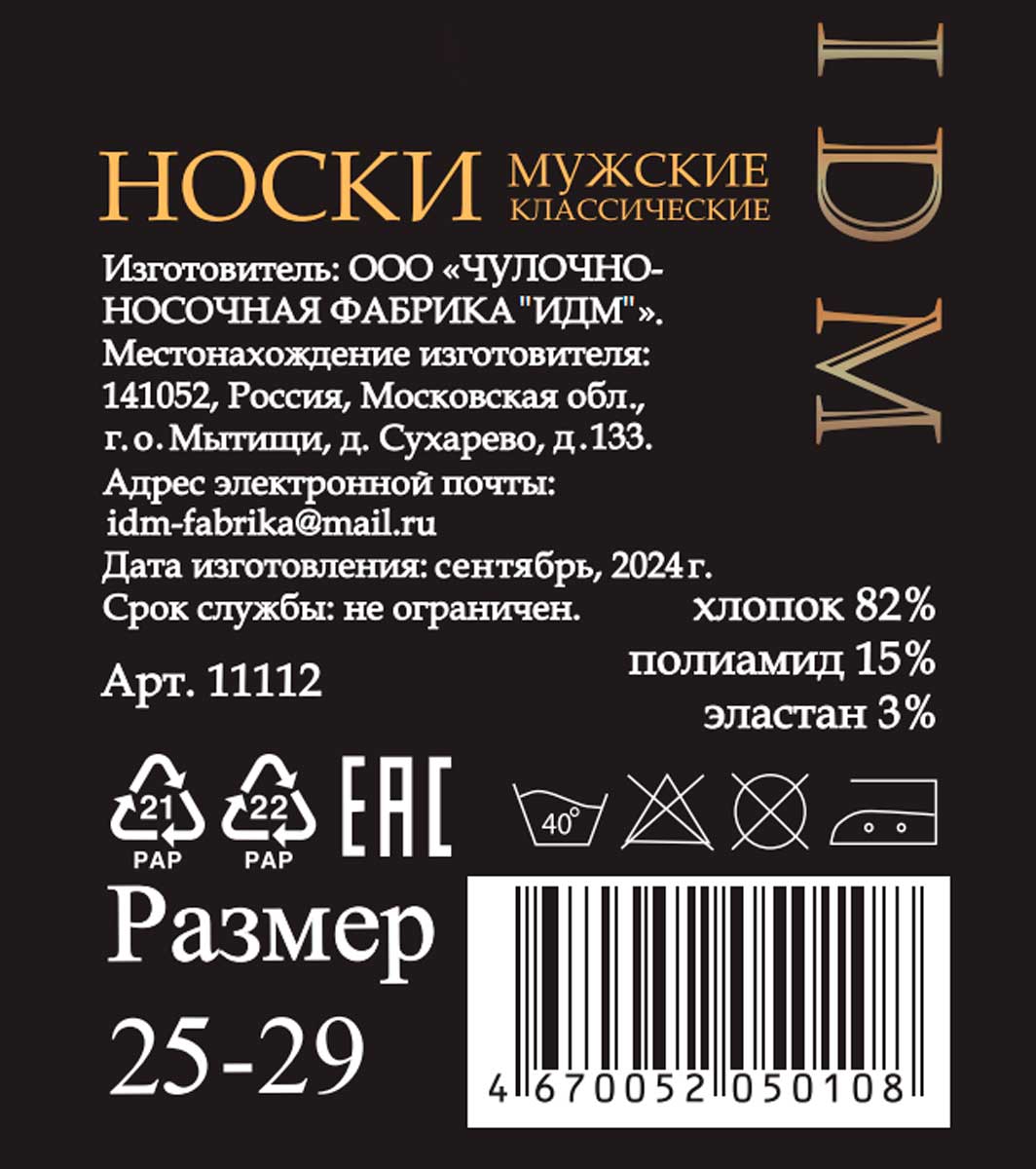 Классические мужские носки идеально подойдут как для повседневной носки, так и для выхода в свет. Изготовлены из высококачественных материалов: 82% хлопка, 15% полиамида и 3% эластана. Обеспечивают комфорт во время ходьбы. Универсальный размер: 25-29.