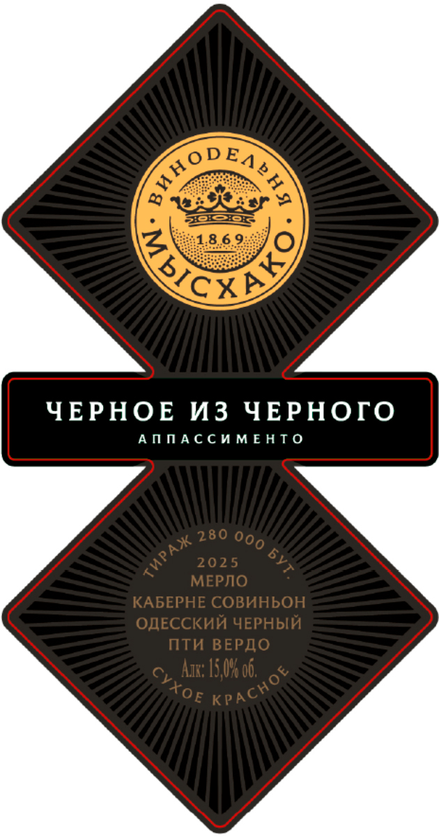 Вино интенсивного темно-красного цвета произведено методом «Аппассименто» (увяливание винограда на лозе) из сортов винограда Мерло, Каберне Совиньон, Одесский черный и Пти Вердо урожая 2023 и 2024 года. Отличается сложным, многогранным ароматом и полным, округлым вкусом. Прекрасно сочетается с твердыми сырами, горячими блюдами из мяса и дичи. Рекомендуемая температура подачи: 16-18 °С.