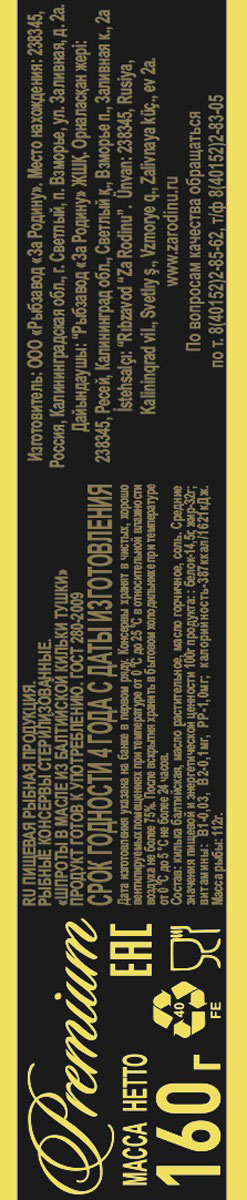 Шпроты в масле За Родину из балтийской кильки обезглавленной