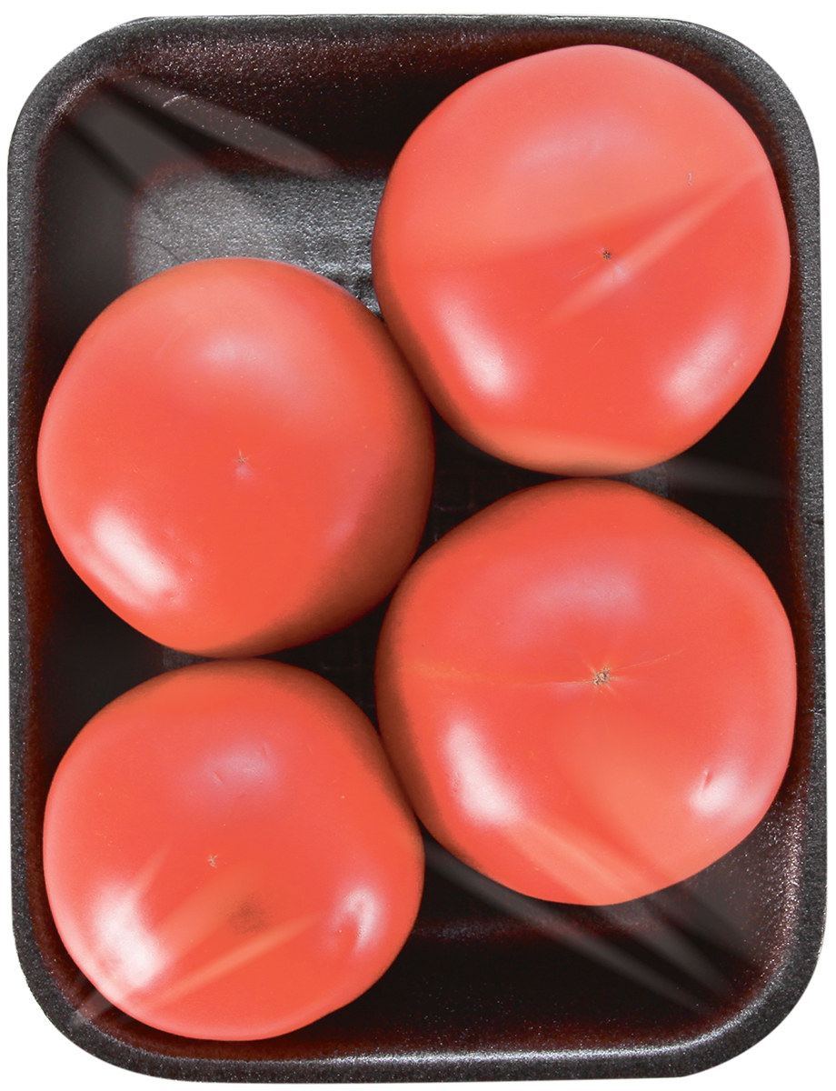 Томаты, фасованные на подложке. Томаты любят и взрослые и дети. Их можно есть в сыром виде, с сахаром или солью, добавлять в первые и вторые блюда. Томат — это один из самых полезных овощей. Они содержат органические кислоты, углеводы, витамины С, В1, В2, В9, РР, Н, К, каротин, минеральные соли — йода, фосфора, железа, меди, хрома, а также ароматические вещества. Томаты нормализуют микрофлору кишечника, снижают уровень сахара в крови, полезны при авитаминозах. Томаты полезны людям не только для физического, но и для психического здоровья. Дело все в том, что они содержат готовый серотонин, который принято считать гормоном счастья.