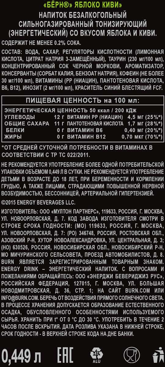 Энергетический напиток Берн Яблоко-Киви ж/б 0,449 л