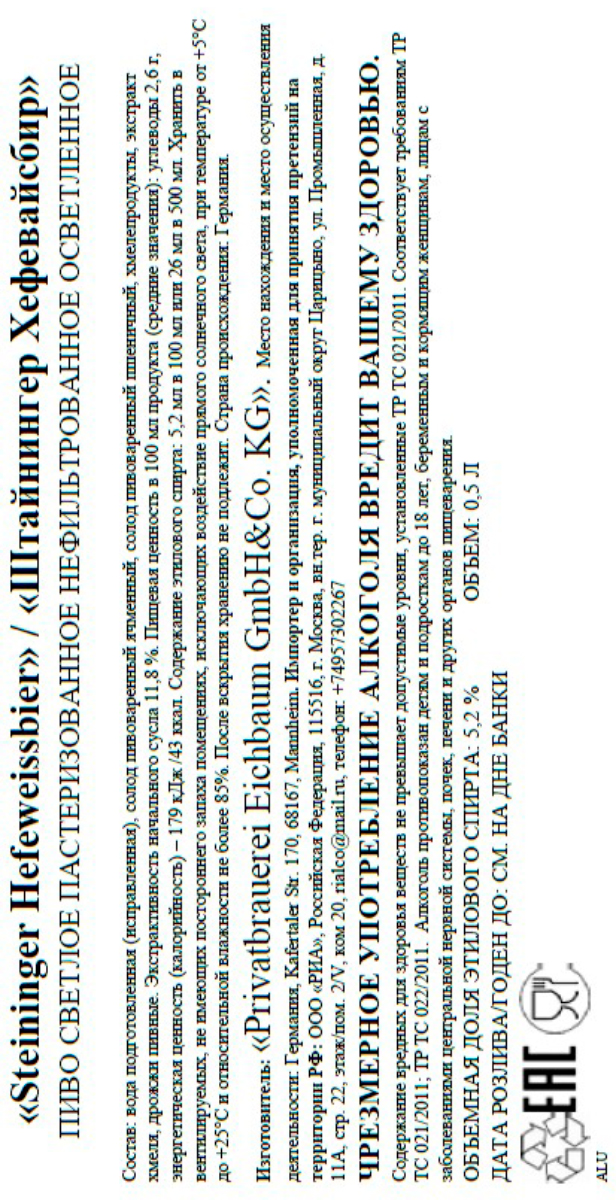Пиво Штайнингер Хефевайсбир светлое нефильтрованное осветленное пастеризованное ж/б
