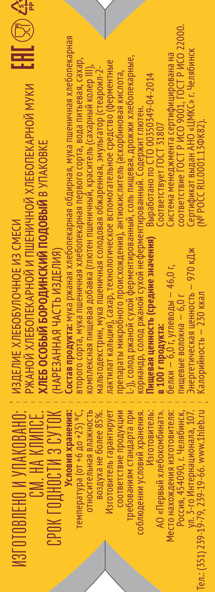 Бородинский Особый хлеб Первый Хлебокомбинат