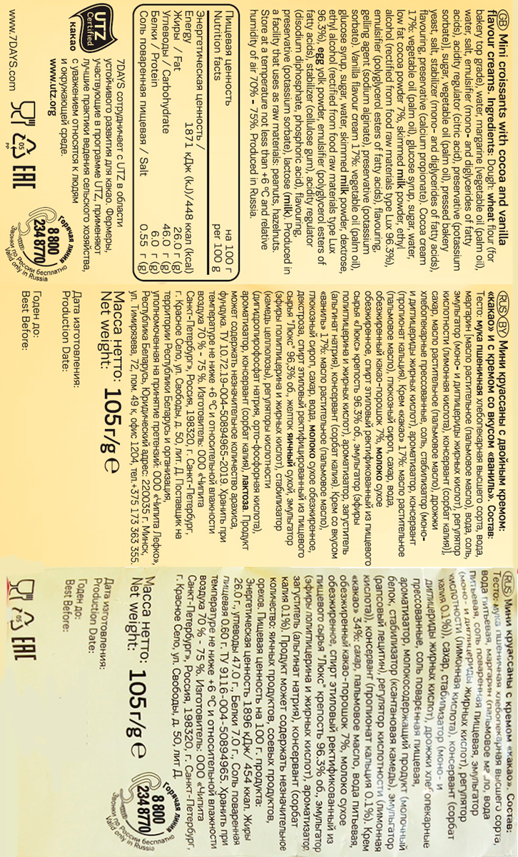 Мини-круассаны 7DAYS c двойным кремом какао-ваниль