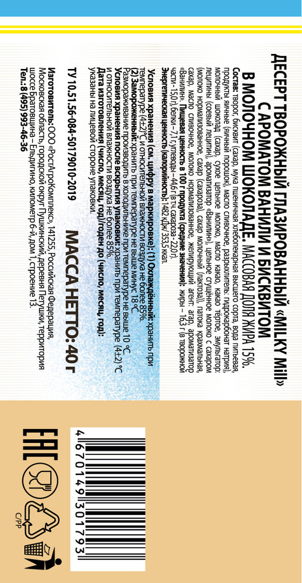 Десерт Милки Милл творожный глазированный