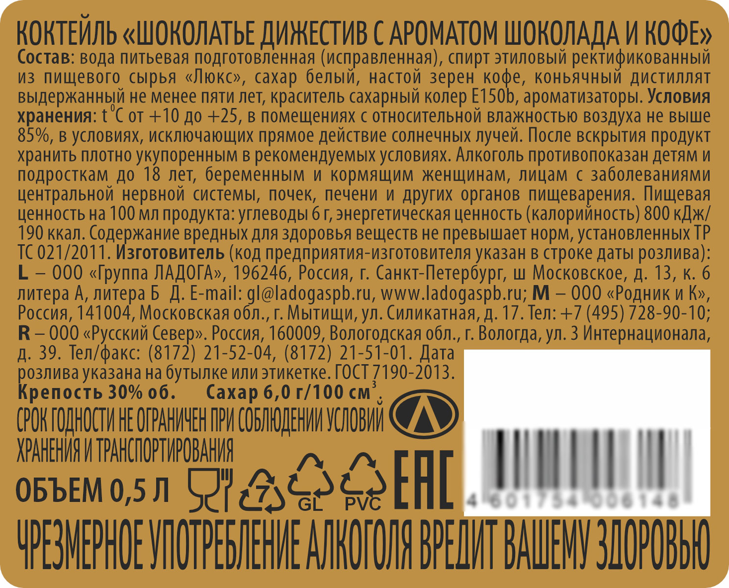Коктейль Шоколатье Дижестив шоколад и кофе 0,5 л