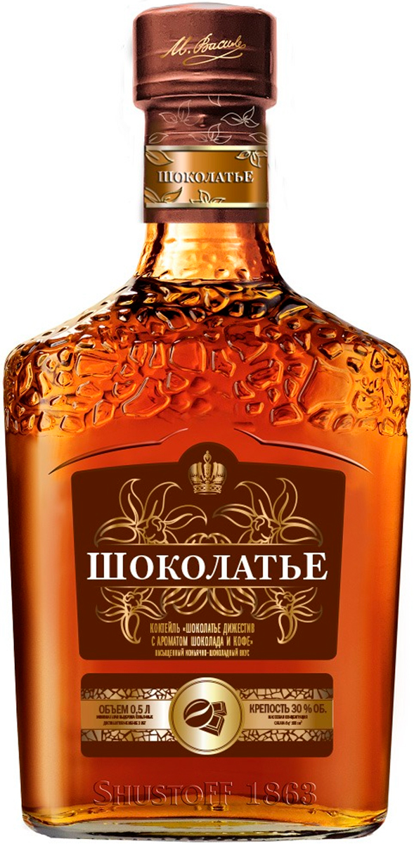 Изысканный дижестив, созданный на основе высококачественных коньячных спиртов 5-летней выдержки в сочетании с натуральными экстрактами шоколада, кофе и пряностей. Отличается сложным, чистым ароматом с шоколадными тонами, а также деликатным вкусом с нотками кофе и легкими ванильными оттенками. Обладает мягким вкусом с легкой пряностью в длительном послевкусии. Идеально сочетается с шоколадом, эклерами, тортами, мороженым или в качестве отдельного десерта.