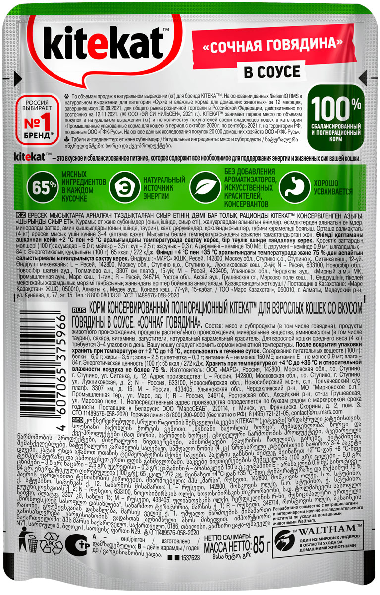 Влажный корм Kitekat — это полноценная еда, которая содержит все необходимое для вашего питомца. Корм Kitekat приготовлен из качественных натуральных продуктов и специально сбалансирован так, чтобы ваша кошка была здоровой и энергичной. Подберите обед для ежедневных побед своего любимца!