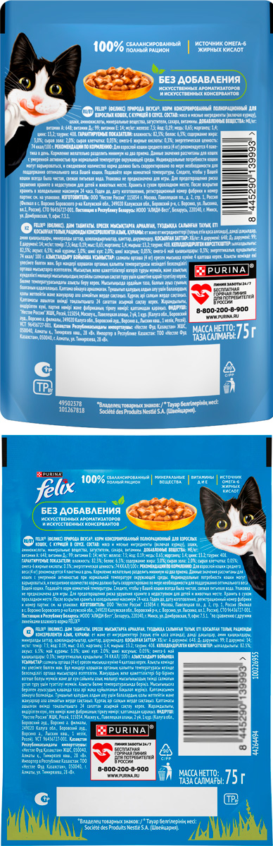 Эксперты Purina, разрабатывая влажные корма для домашних питомцев, создали насыщенный корм для взрослых кошек FELIX® «Природа вкуса» с аппетитными кусочками в сочном соусе. Полнорационный влажный корм обеспечит вашего любимца всеми необходимыми питательным веществами.