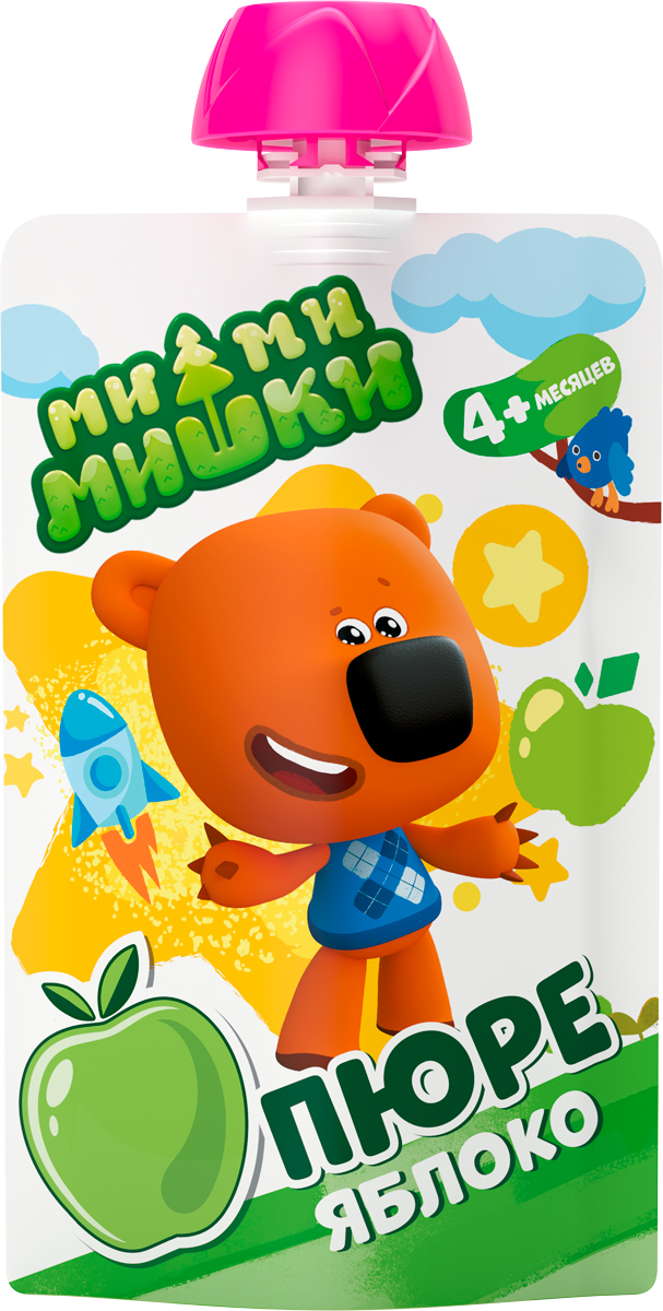Южные яблочки в удобной упаковке с любимым героем Кешей из мультсериала «Ми-ми-мишки». Пюре «Ми-ми-мишки» в мягкой упаковке удобно взять на прогулку или в путешествие. Продукт готов к употреблению. Без добавления сахара.