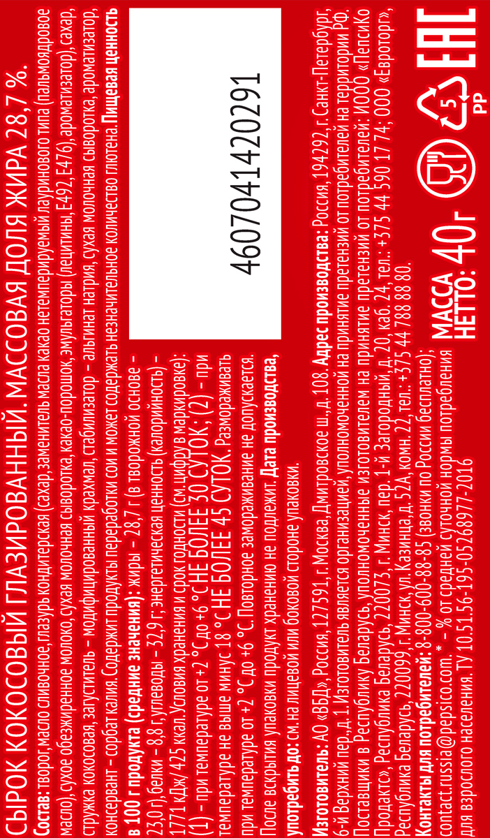 Сырок глазированный Чудо кокос 28,7% 40 г