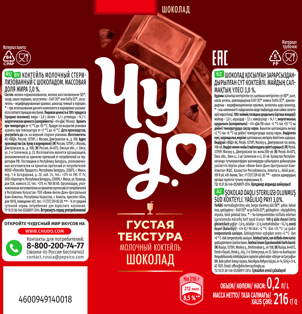 «Чудо» – одна из самых популярных марок йогуртов и молочных десертов в России, появившаяся на рынке в 1998 году. Неизменное качество обеспечивается точно подобранными ингредиентами и тщательным контролем производства. Благодаря уникальной асептической технологии производства коктейль молочный «Чудо» сохраняет все полезные свойства молока.