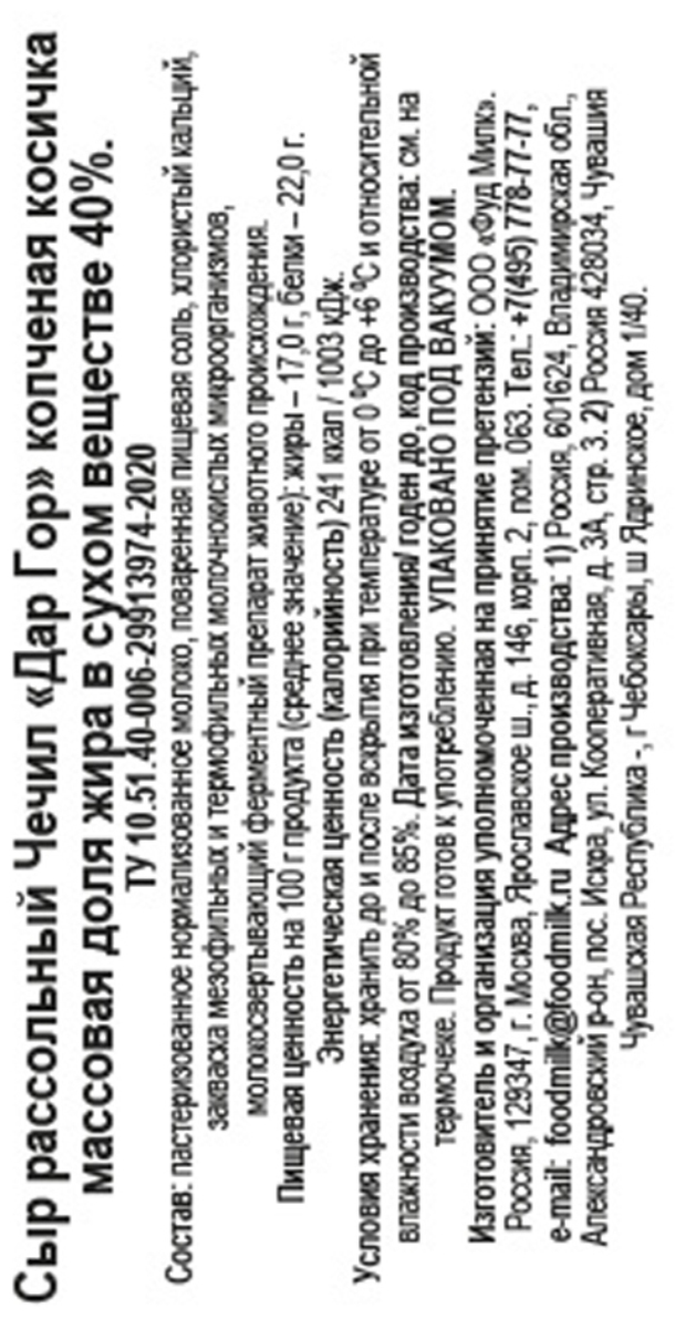 Сыр Дар Гор Чечил Косичка копченая 40%