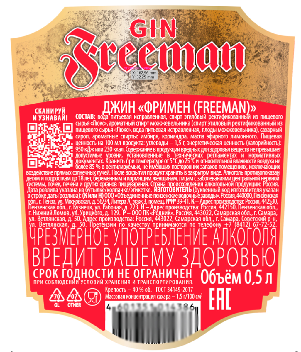 Джин Фримен 0,5 л