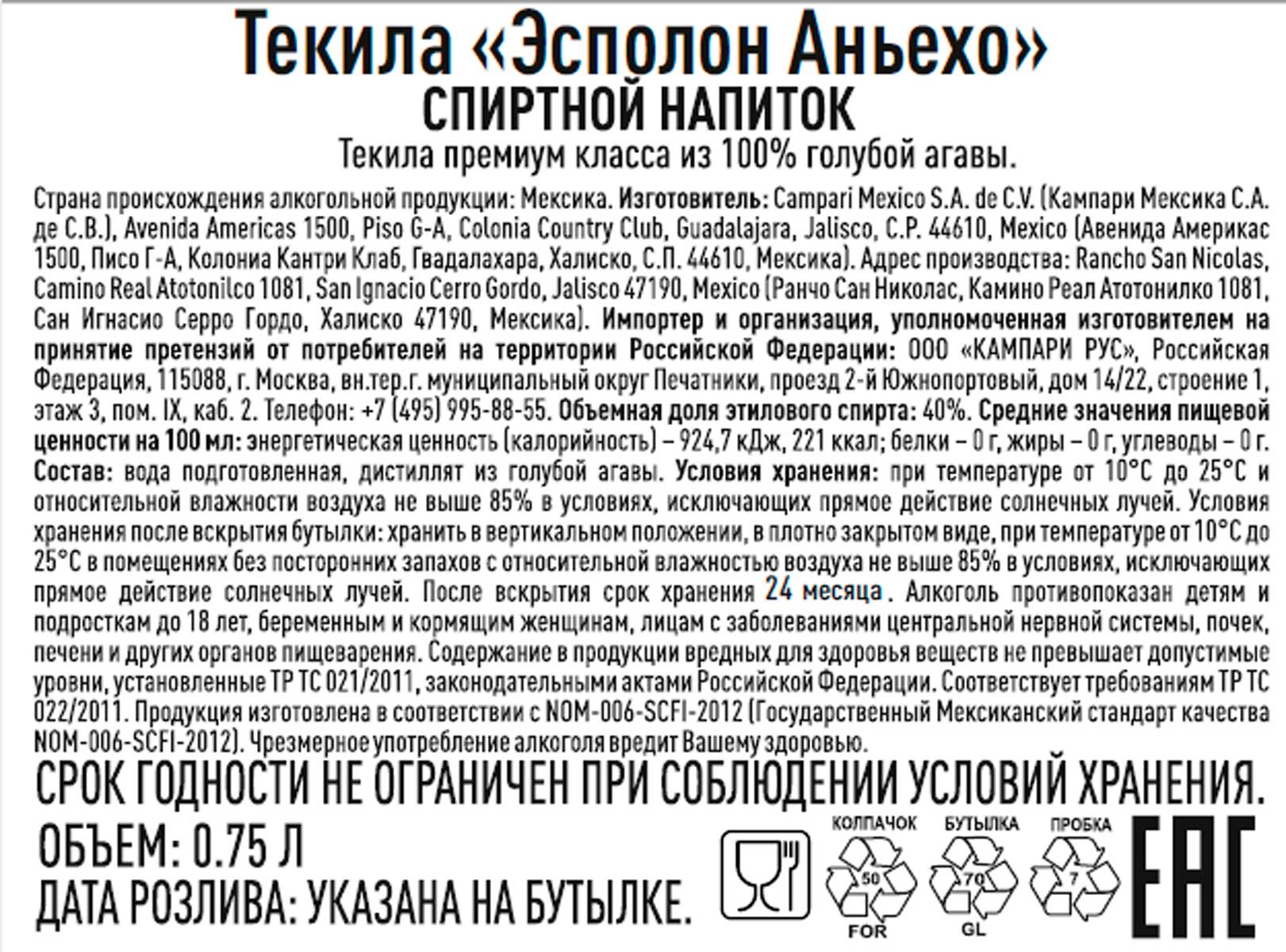 Текила Эсполон Аньехо 0,75 л