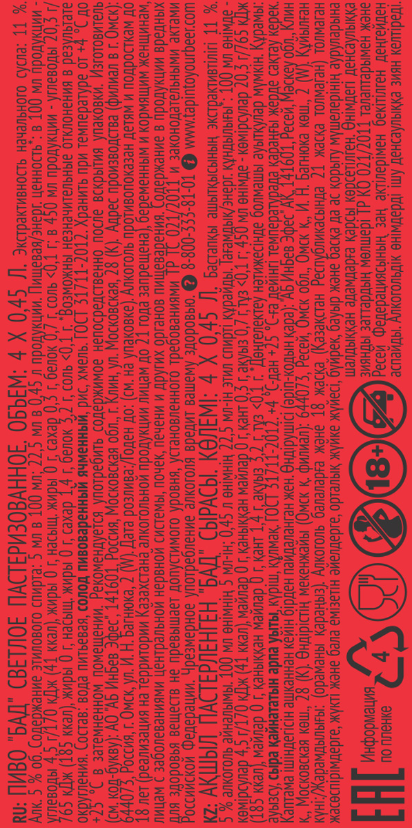 Пиво Бад светлое в стяжке ж/б 0,45 л