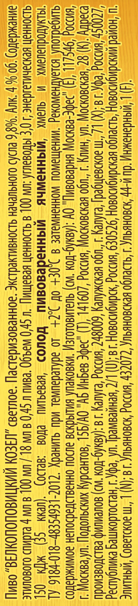 Пиво Велкопоповицкий Козел светлое ж/б 0,45 л