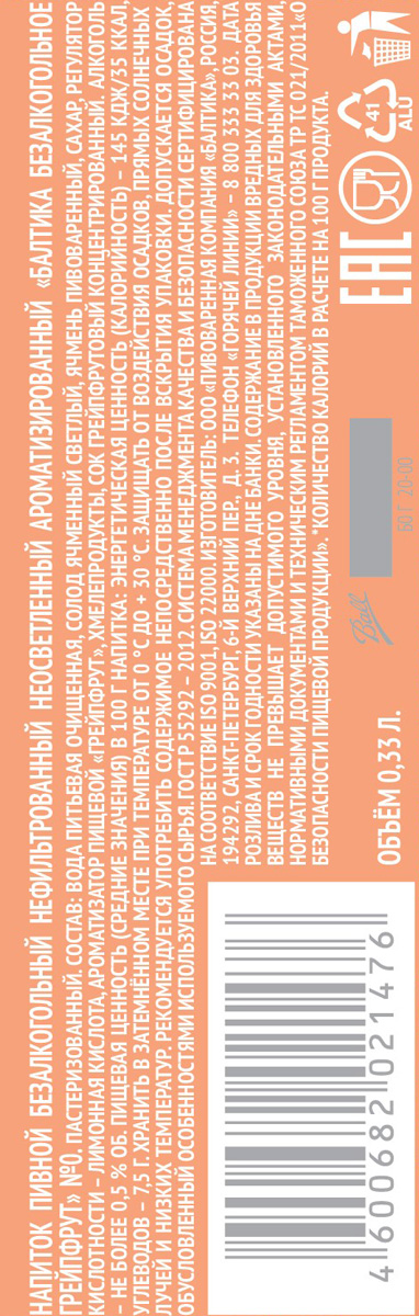 «Балтика 0 Грейпфрут» — это освежающее нефильтрованное безалкогольное пиво с насыщенным цитрусовым вкусом и грейпфрутовым соком. Это абсолютно новый вкус в линейке, который позволит освежиться и насладиться каждый моментом в течение дня.