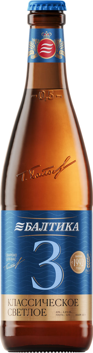 Пиво «Балтика №3 Классическое» было впервые выпущено в 1992 году, с середины 90-х, благодаря неизменно высокому качеству, традиционно является самым популярным пивом у россиян. Это пиво сварено по тому самому, легендарному, первому рецепту. «Балтика №3 Классическое» — десятикратный обладатель престижной российской премии в области потребительских товаров «Товар года». Премия присуждается наиболее популярным у покупателей товарам массового спроса, представленным в ассортименте розничных магазинов. С момента основания премии и по сегодняшний день лидерство в номинации «пиво» безоговорочно удерживает пиво «Балтика №3 Классическое».