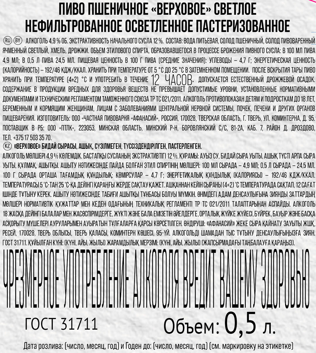 Афанасий Верховое пшеничное пиво