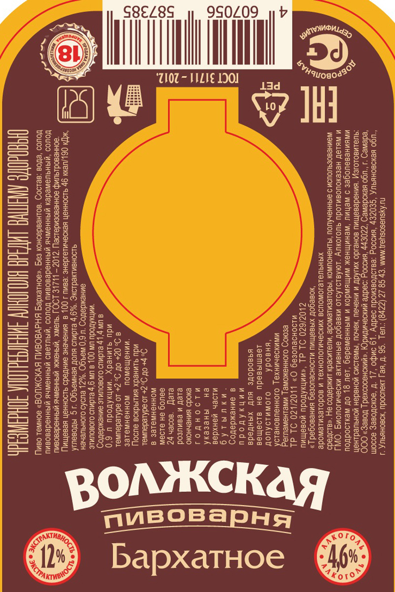Волжская пивоварня бархатное темное