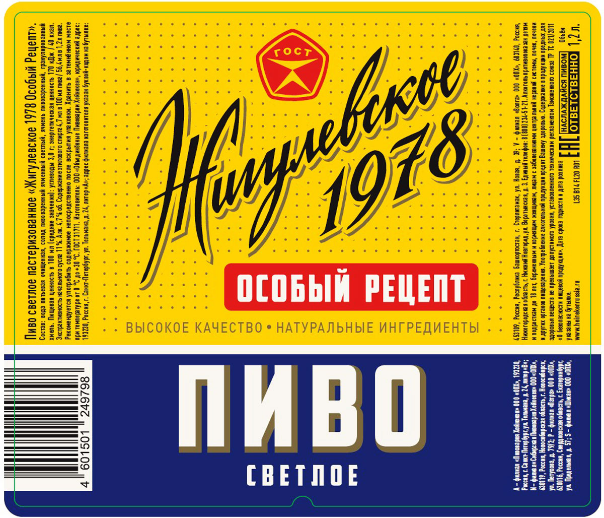 Пиво Жигулевское 1978 Особый Рецепт светлое пастеризованное ПЭТ 1,2 л