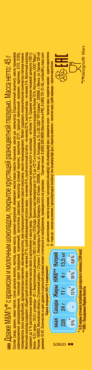 Драже M&Ms с арахисом 45 г
