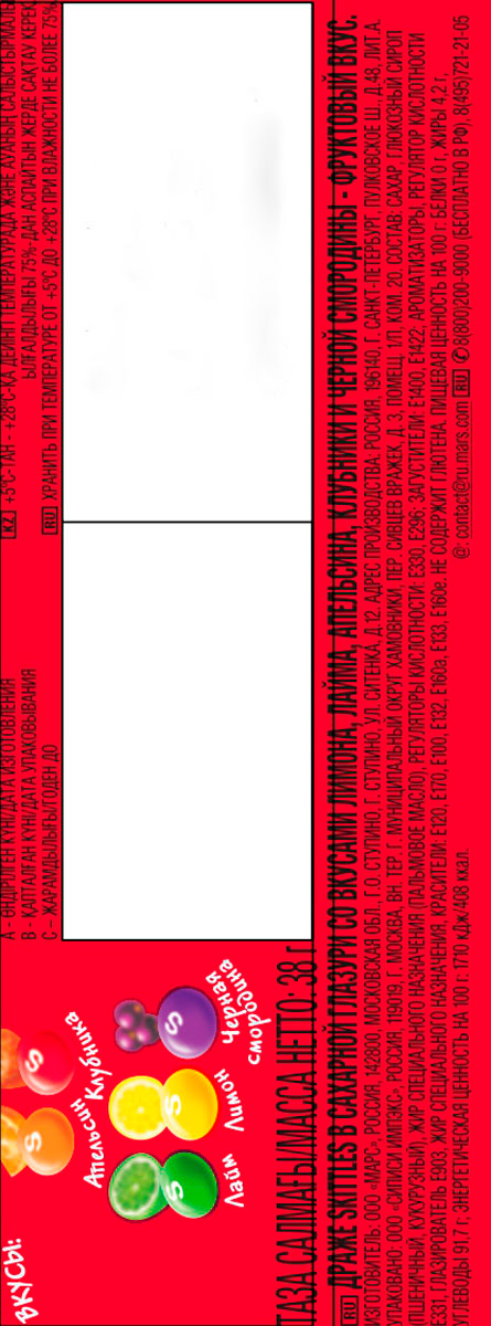 Жевательные конфеты Skittles c разноцветной глазурью предлагают радугу фруктовых вкусов в каждой упаковке! Конфеты с ароматами лимона, лайма, апельсина, клубники и черной смородины. Заразись радугой, попробуй радугу!