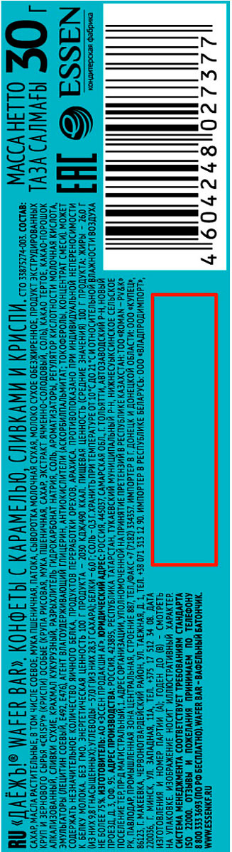 ДАЁЖЪ — вафельный батончик, состоящий из хрустящих вафель, нежной ореховой или сливочной начинки и покрытый мягкой тянущейся карамелью, усыпанной хрустящими криспи или орешками. Удобный формат для перекуса на ходу! Штучный продукт.