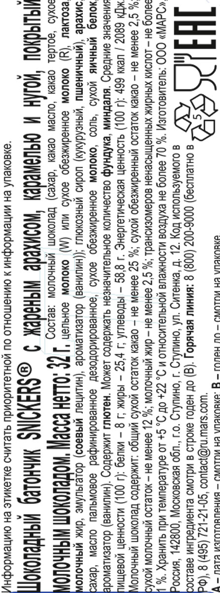 Потрясающе вкусный батончик Snickers, покрытый нежным молочным шоколадом с жареным арахисом, нугой и карамелью. Подходящий перекус, который можно взять с собой на ходу в любой момент. Идеален вместе с горячими напитками или под просмотр хорошего фильма. Эти вкусные шоколадные батончики даже успокаивают нервы заядлых футбольных болельщиков во время крупных матчей. Snickers утоляет голод, чтобы вы могли справиться с чем угодно.
