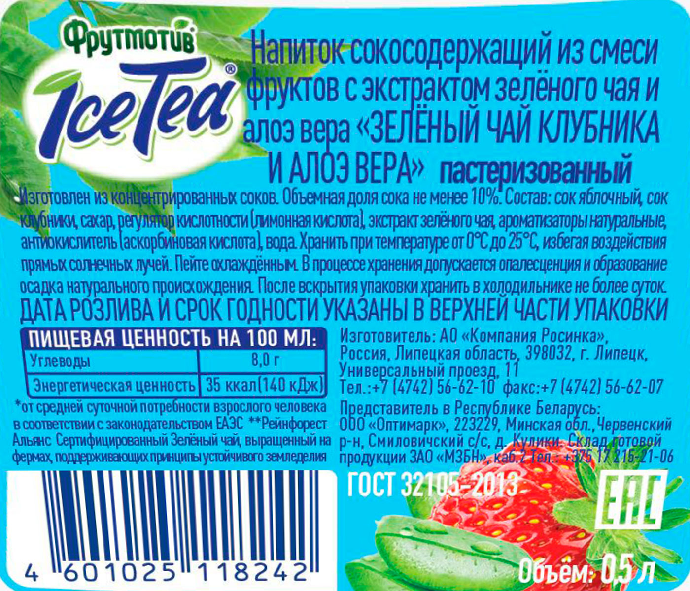 Фрутмотив АйсТи Зеленый чай Клубника и алоэ вера