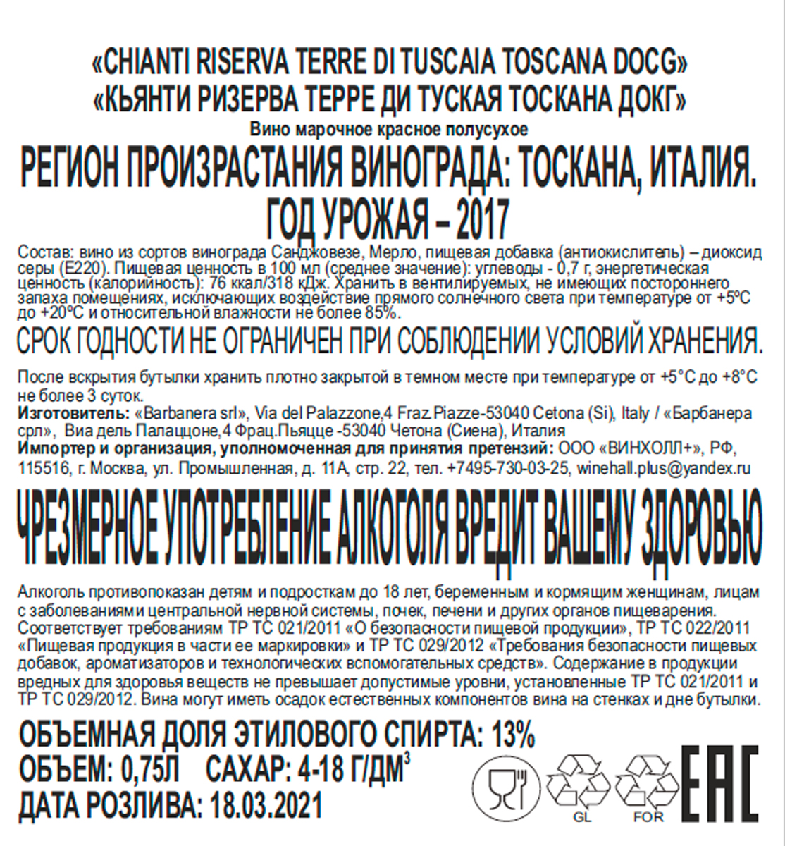 Вино Кьянти Ризерва красное полусухое 0,75 л