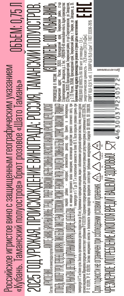 Вино игристое Шато Тамань розовое брют 0,75 л