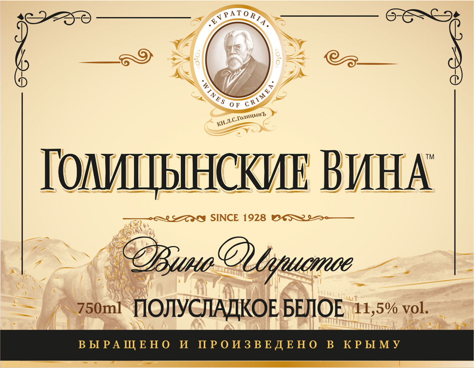 Вино обладает светло-соломенным цветом и сбалансированным, гармоничным вкусом, приятной легкой сладостью. «Голицынские вина» выпускаются на одном из старейших заводов Крыма — «Заводе классических вин». Это вино изготовлено из винограда сортов Рислинг, Ркацители, Совиньон, Шардоне, Алиготе, Мускат. Хорошо проявит себя с морепродуктами, мягким сыром и свежими фруктами. Рекомендуется подавать при температуре 8-10 °С.