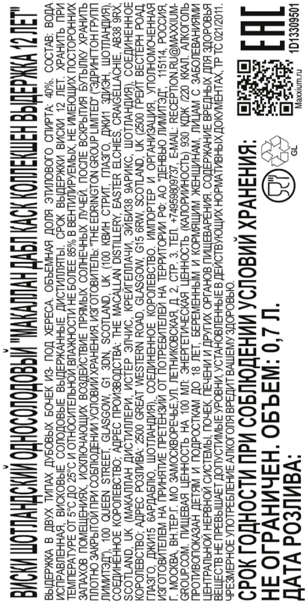 Виски Макаллан Дабл Каск 12 лет п/к 0,7 л
