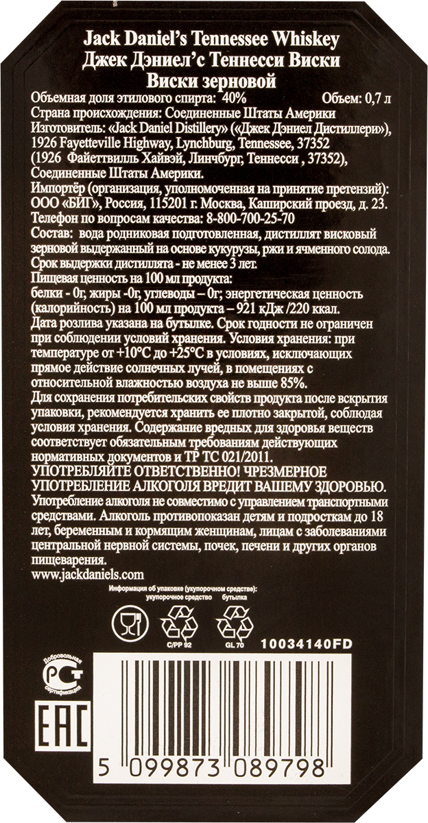 Виски Теннесси Джек Дениел`с