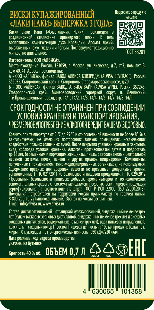 В виски Lucky Nucky воссоздан типичный вкус и аромат ирландского виски: мягкий, бездымный, с яркими фруктовыми нотами. У ирландского виски лучше сохраняется едва уловимый аромат ячменного солода, чувствуются лимонные и фруктовые тона. Виски Lucky Nucky – идеальная база для коктейлей.