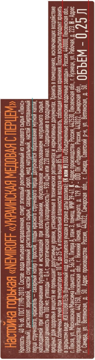 Настойка горькая Немирофф Украинская Медовая с перцем 0,25 л