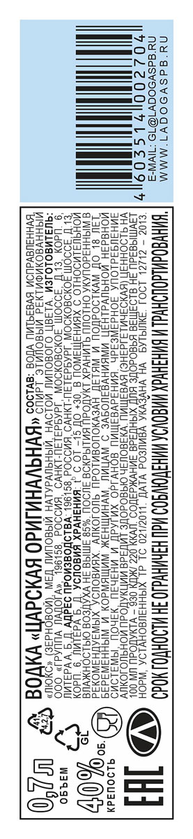 При внешнем антураже и цене водка не соответствует ни тому, ни другому. Горькая, плохопахнущая спиртуозность и головная боль на утро.