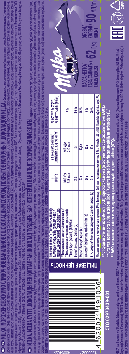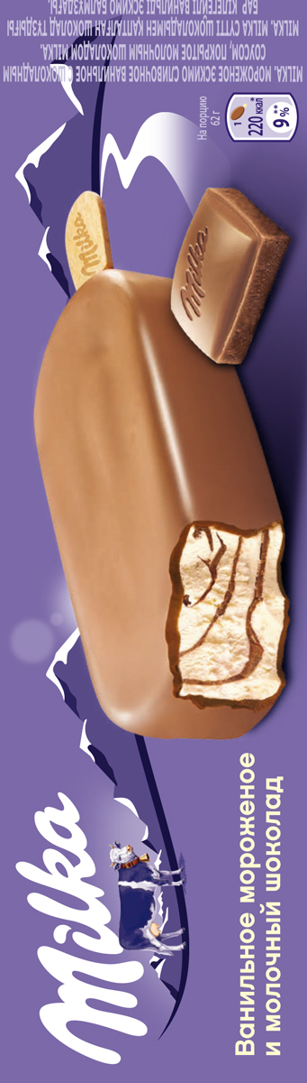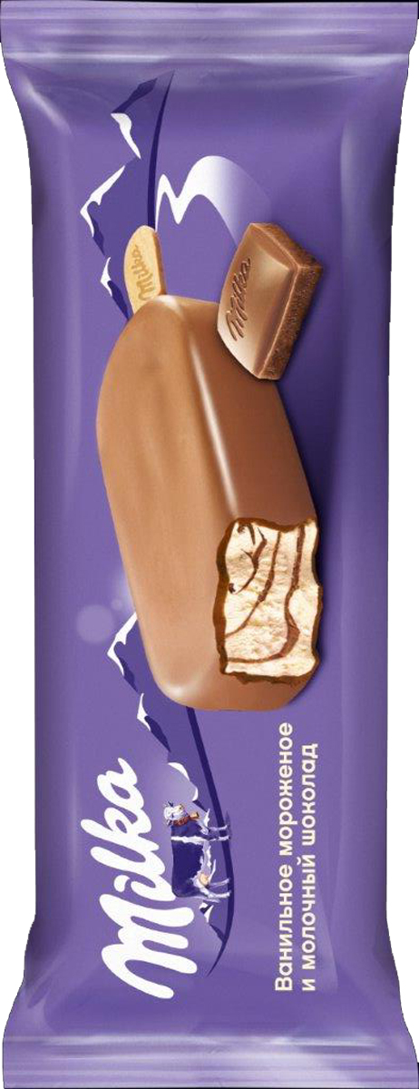 Невероятно нежное ванильное мороженое с кусочками стручков ванили и тонкой хрустящей прослойкой шоколада Milka внутри, покрытое молочным шоколадом Milka, тающим во рту!