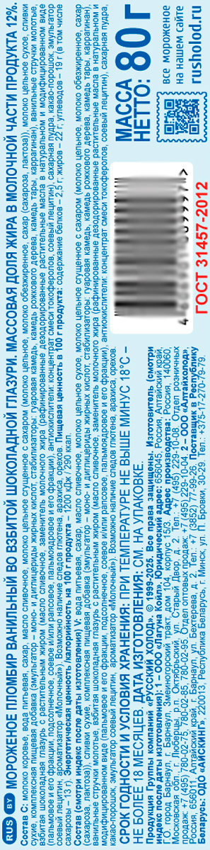 Русский холод Лакомка пломбир ванильный