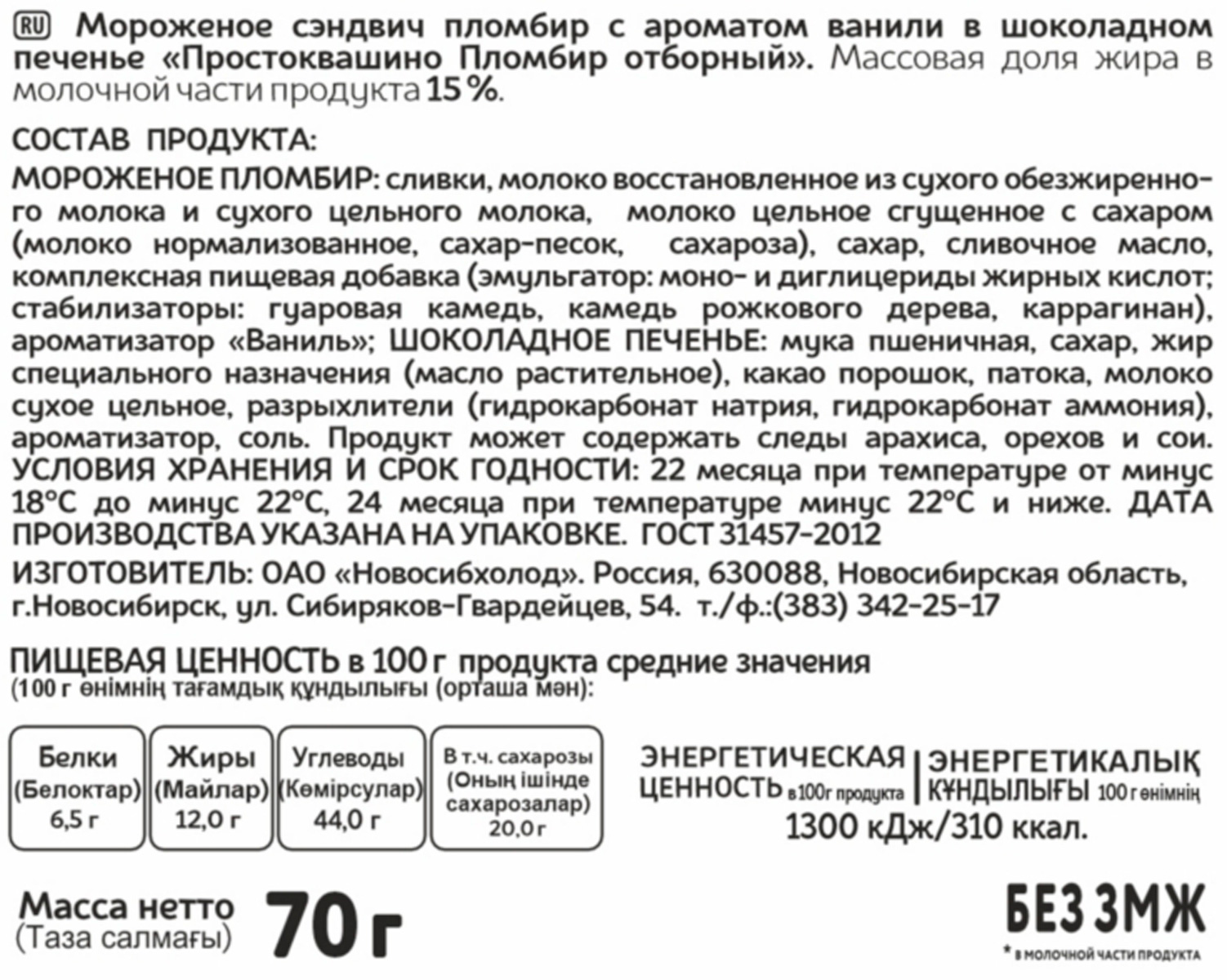 Мороженое Простоквашино сэндвич