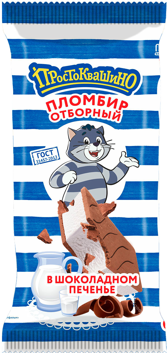 Мороженое-сэндвич «Простоквашино». Натуральный отборный пломбир 15% между двумя хрустящими шоколадными печеньками. Идеально для перекуса на ходу. Вкусно, потому что натуральное!