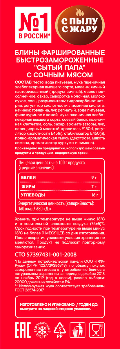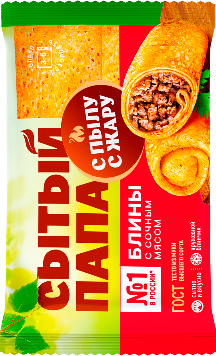 Блины «Сытый папа» — нежные румяные блины с сочным мясом, которые могут стать основным блюдом вкусного легкого завтрака или полдника, украшением любого чаепития или десертом после сытного ужина. Неважно, когда вы захотите подкрепиться, важно, что они точно вам понравятся!