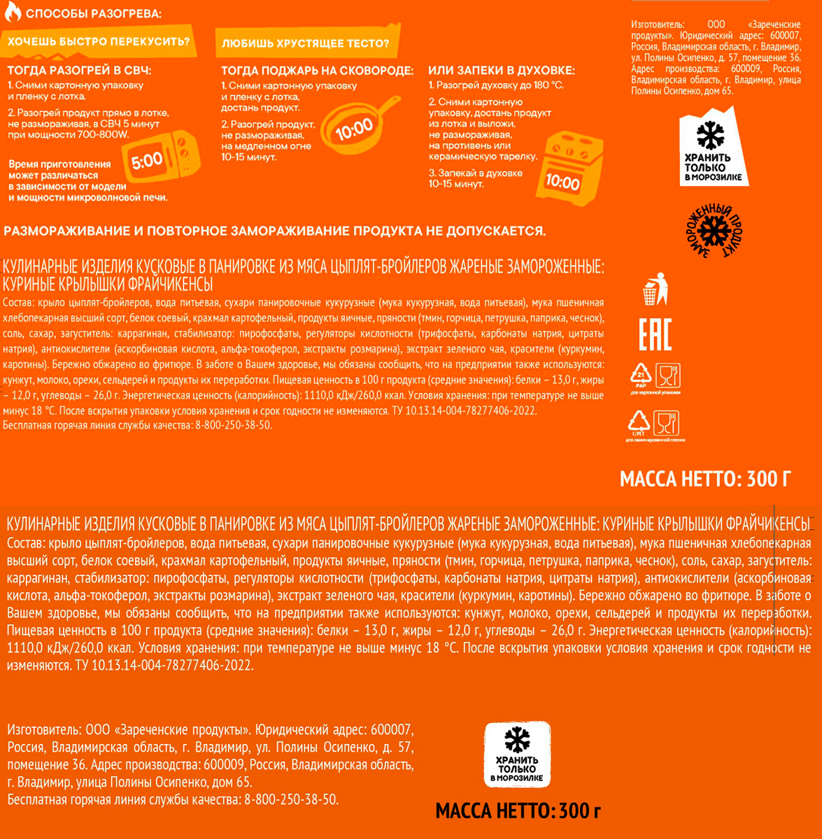Фрайчикенсы Горячий заряд куриные крылышки 300 г