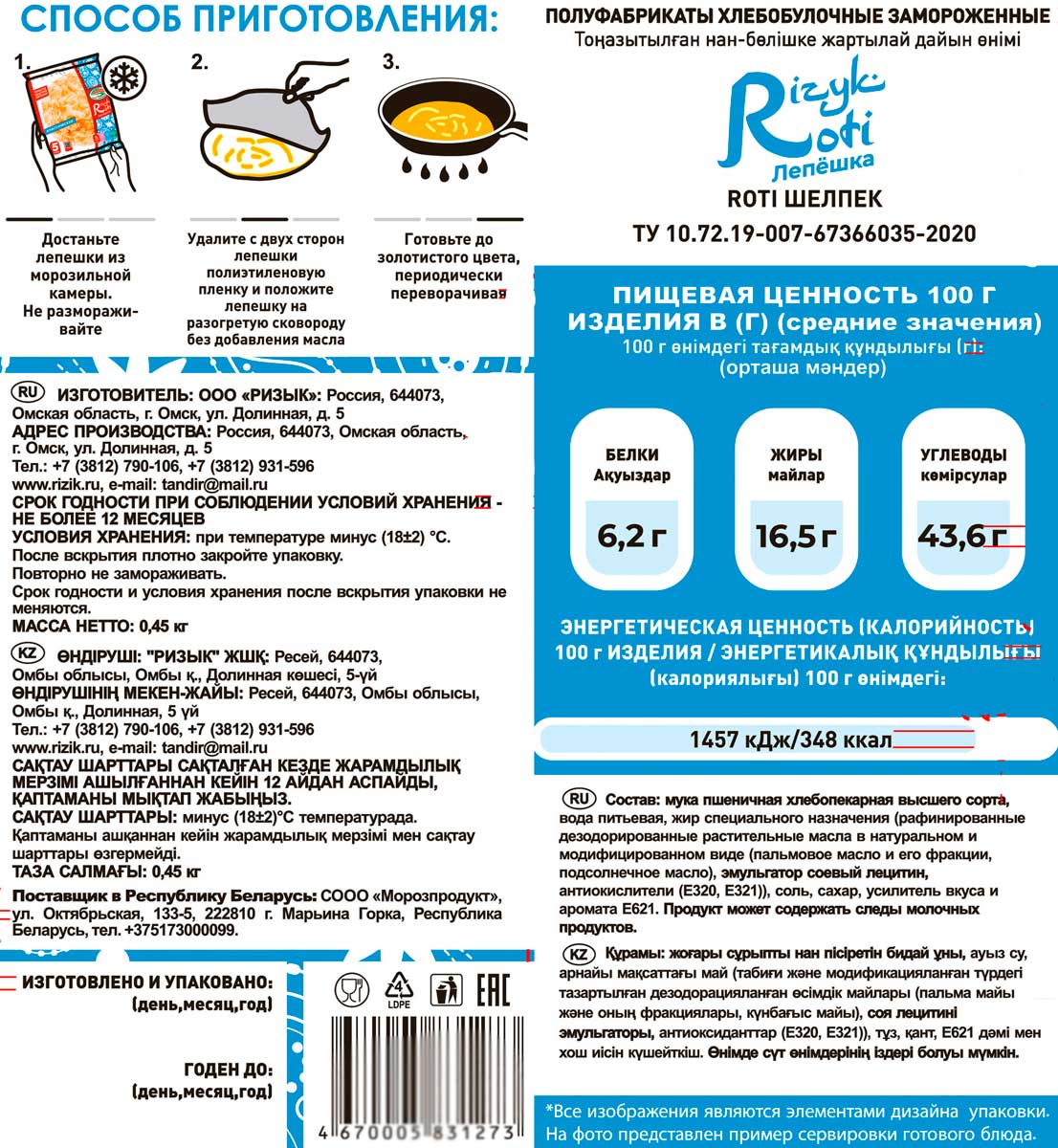 Лепешки Roti по своему составу представляют собой индийскую версию слоеного теста. Они такие румяные и аппетитные, что никого не оставят равнодушными и спасут от голода и унылого настроения! Замороженная лепешка Roti после приготовления может быть как самостоятельным блюдом, так и основой для сэндвичей, пиццы, роллов, различных закусок.